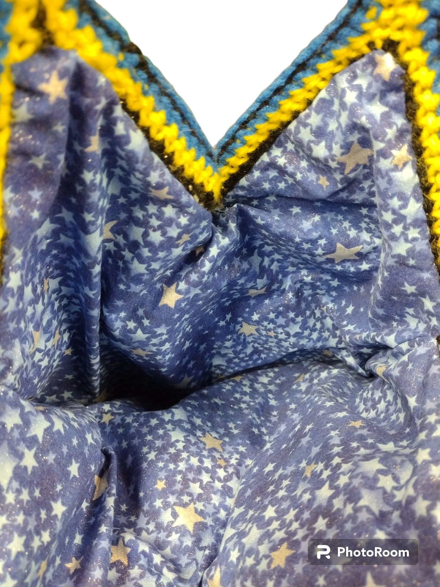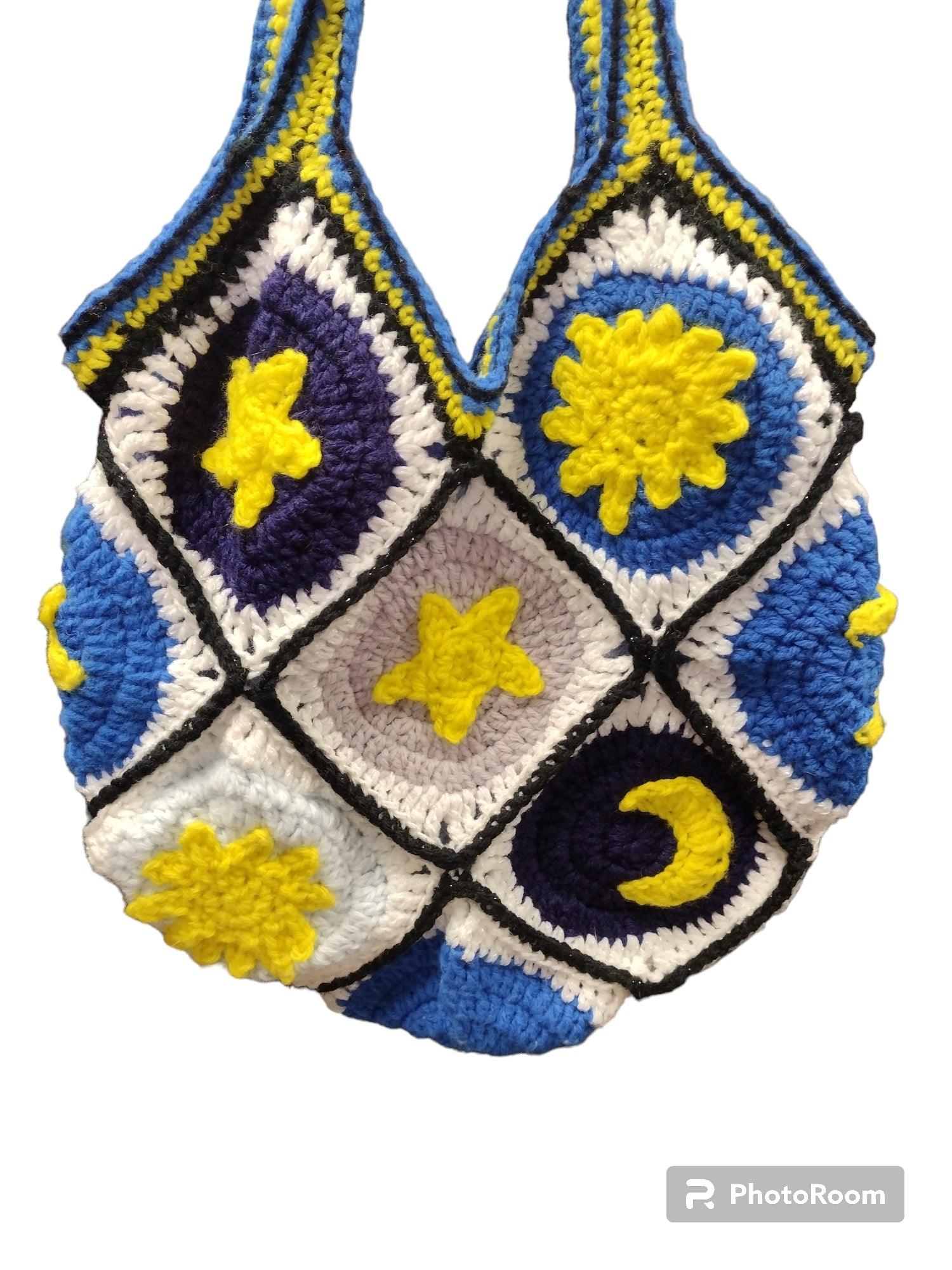 Float through your day wrapped in lunar love with the Moonbeam Mosaic Slingāa hand-crocheted patchwork purse stitched with cosmic intention. Each square is a little portal: glowing suns, sleepy moons, and twinkling stars woven into a kaleidoscope of blues, golds, and midnight black. Itās fully lined and kissed with glittery star fabric, like a secret constellation tucked inside.