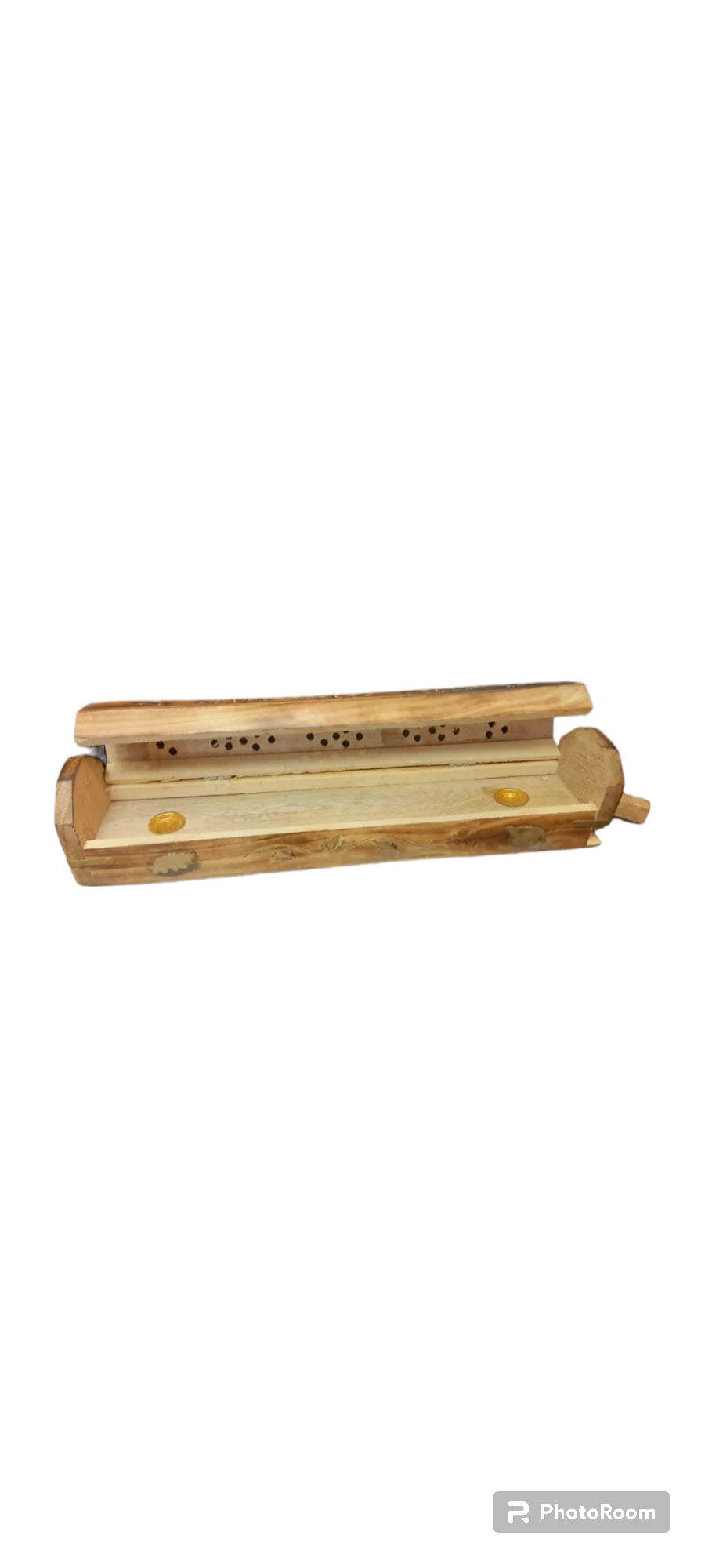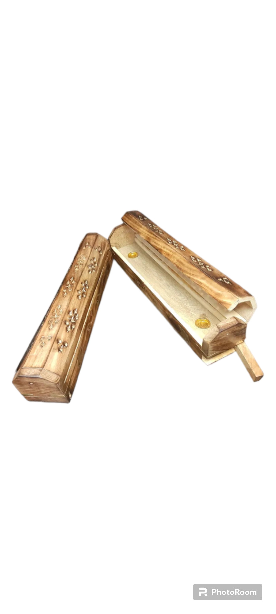 This hand-carved wooden incense burner is your go-to for grounding rituals, dreamy mornings, and moonlit meditations. Burn stick or cone incense in its dual brass insets, then tuck your favorite blends underneath in the hidden compartment—because even sacred smoke needs a secret stash.