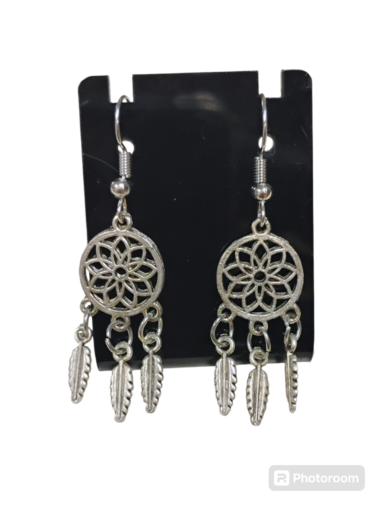 ✨ Float between realms with Silver Drift—a dreamy pairing that balances minimalist shimmer with boho soul. This set includes sleek silver ball studs for everyday grounding, and intricate dreamcatcher dangles that sway like whispers from the spirit world. Feathered charms and webbed circles evoke moonlit wanderings and sacred stillness, while the metallic finish keeps things cool, clean, and quietly bold.
