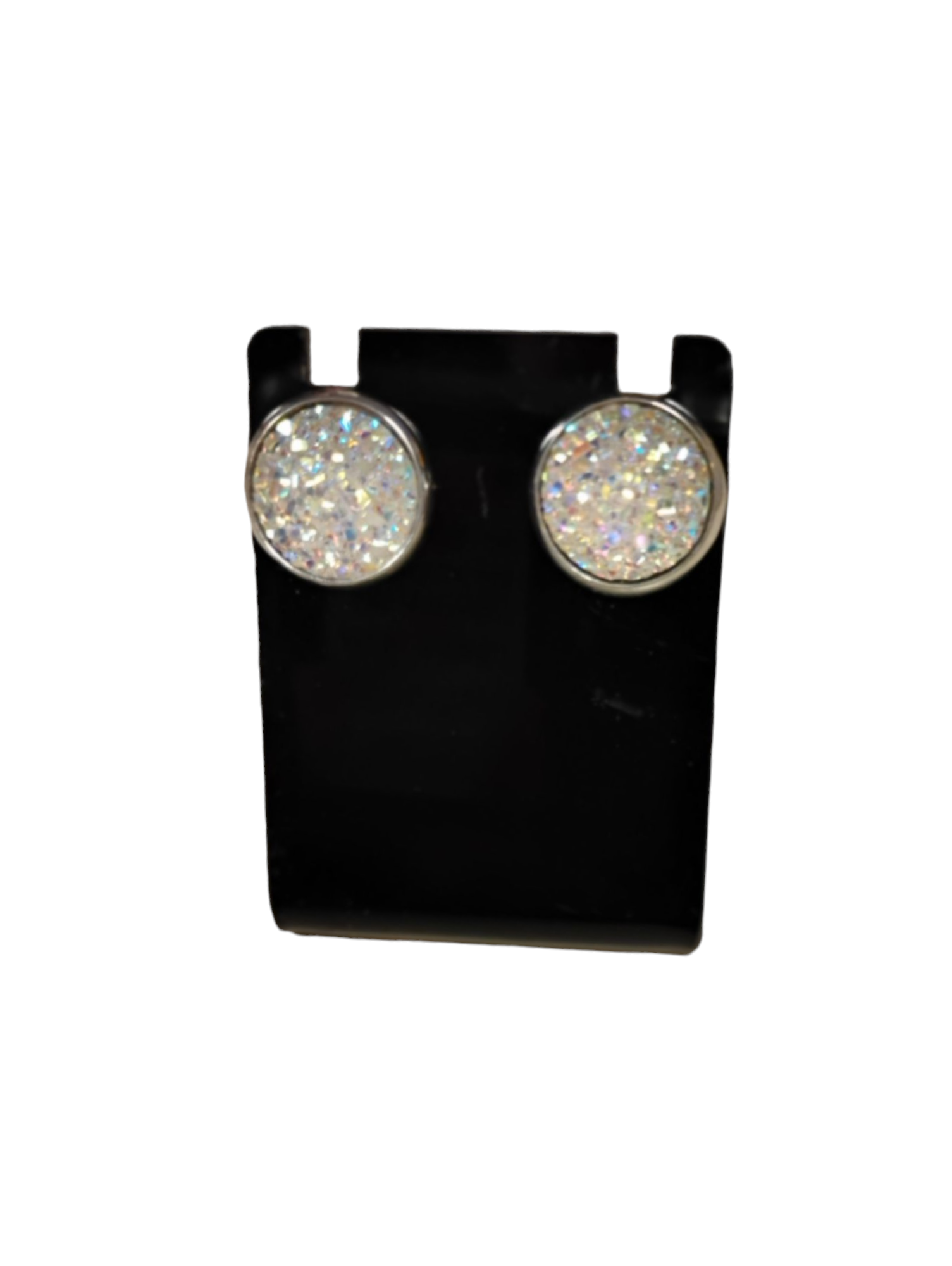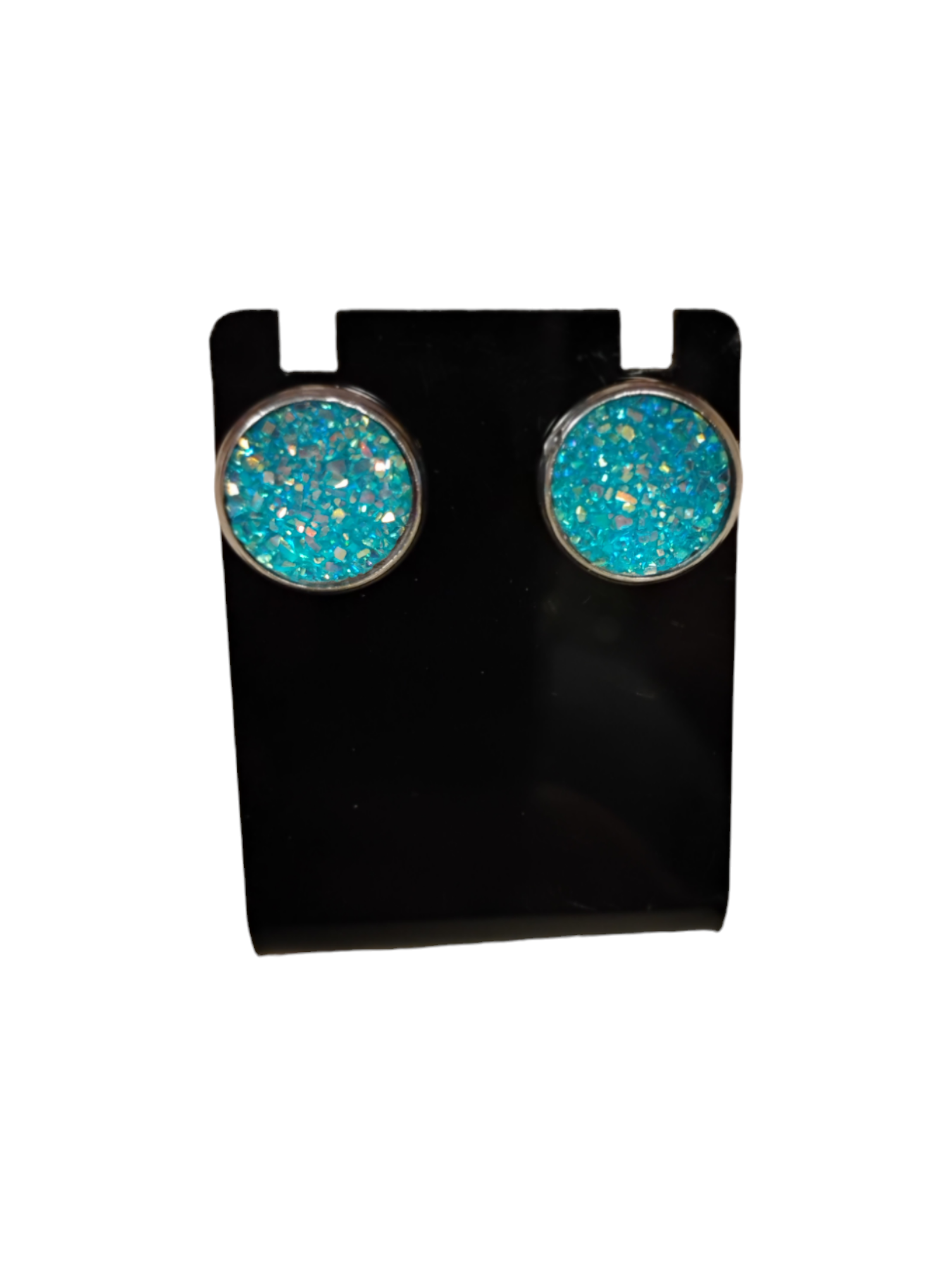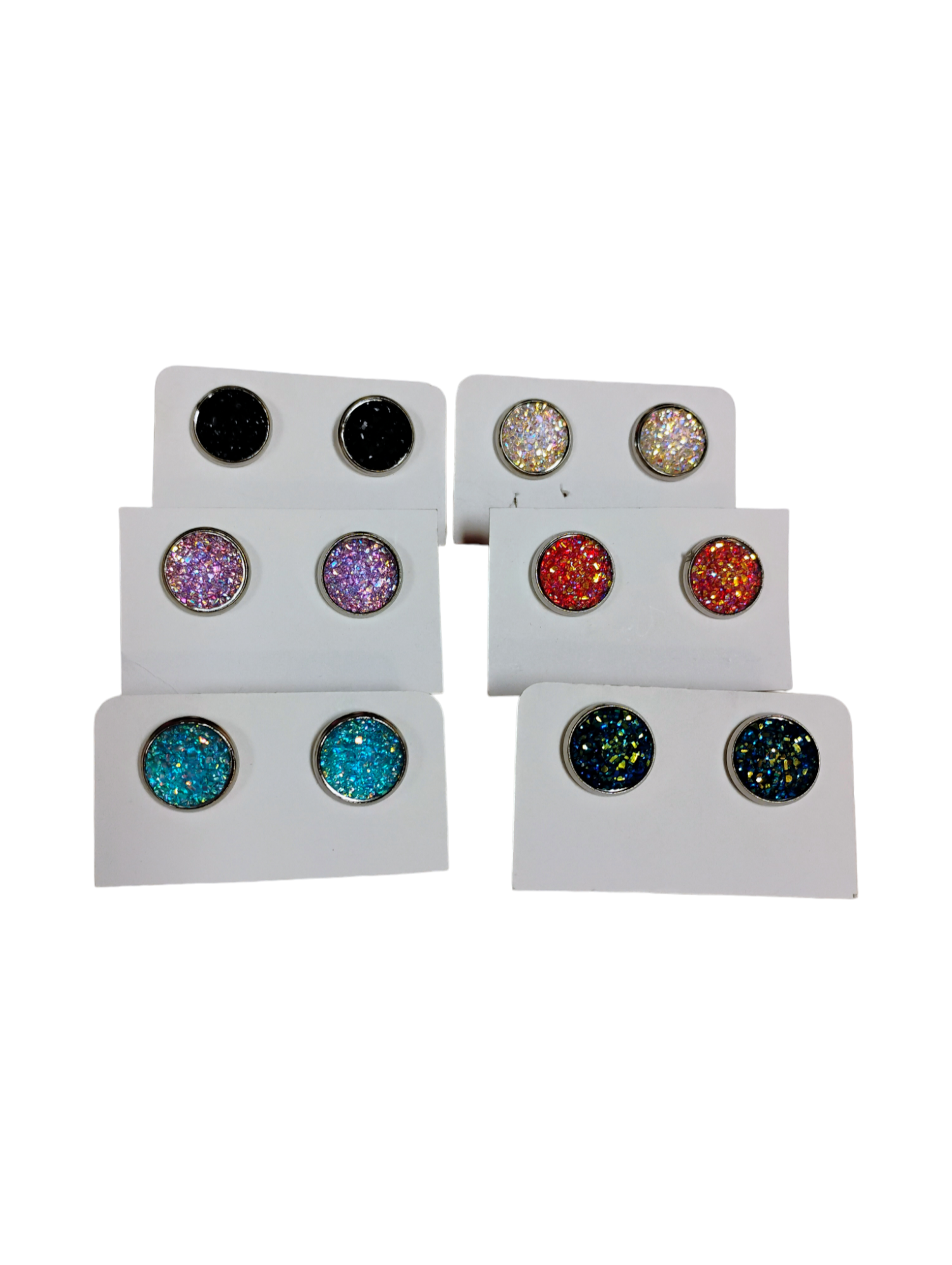 These fabulous pierced stud type earrings are sure to grab people's attention! Available in a variety of colors these druzy glitter earrings will get with almost any outfit! Choose from available options