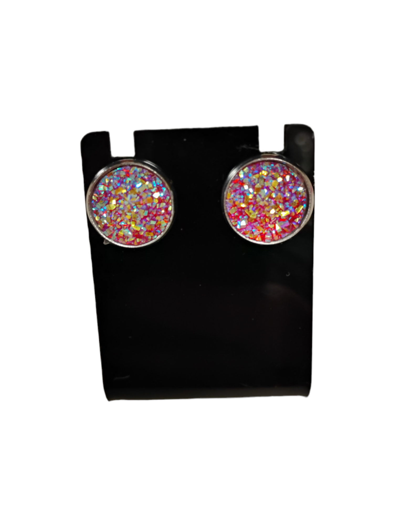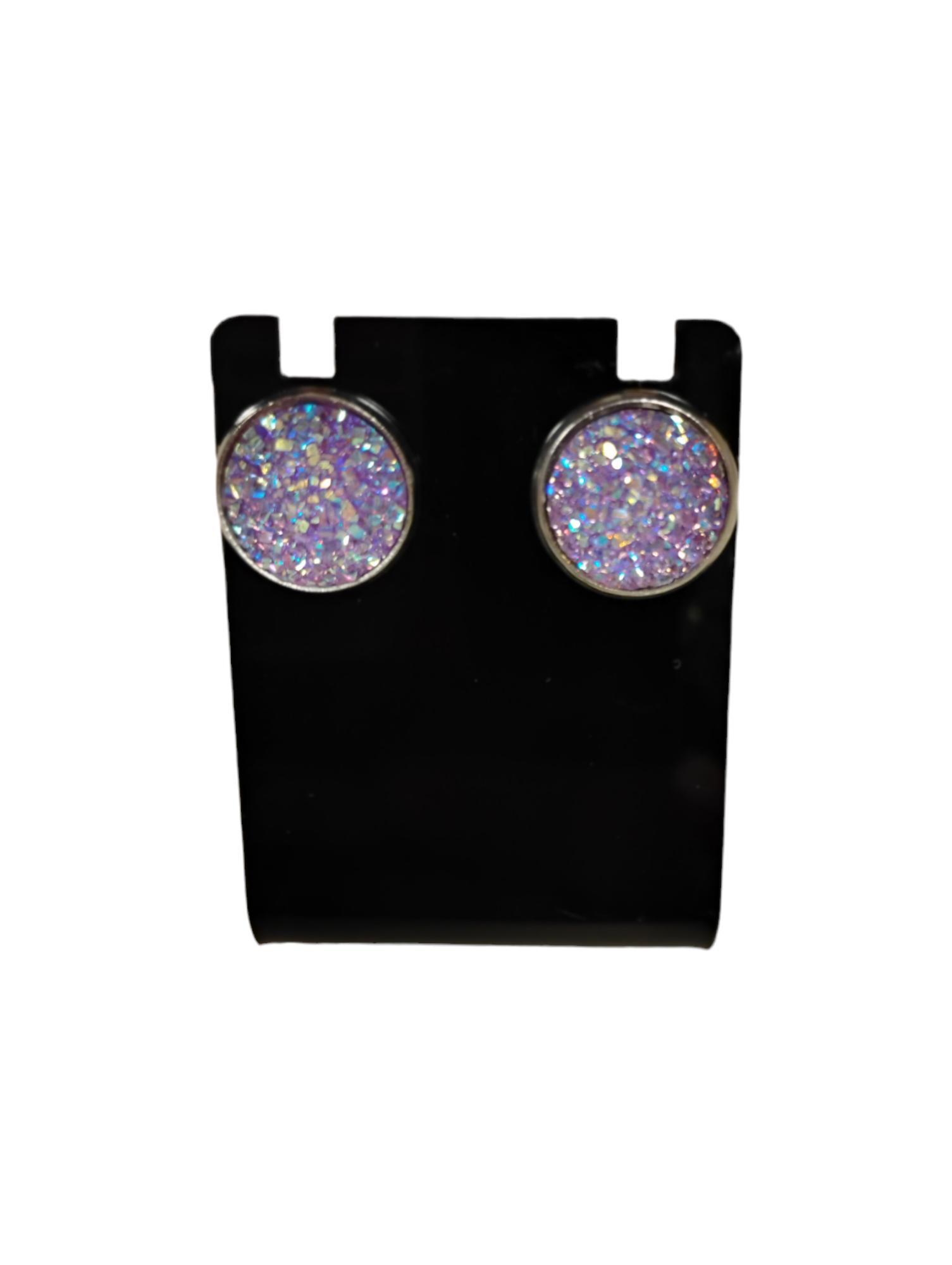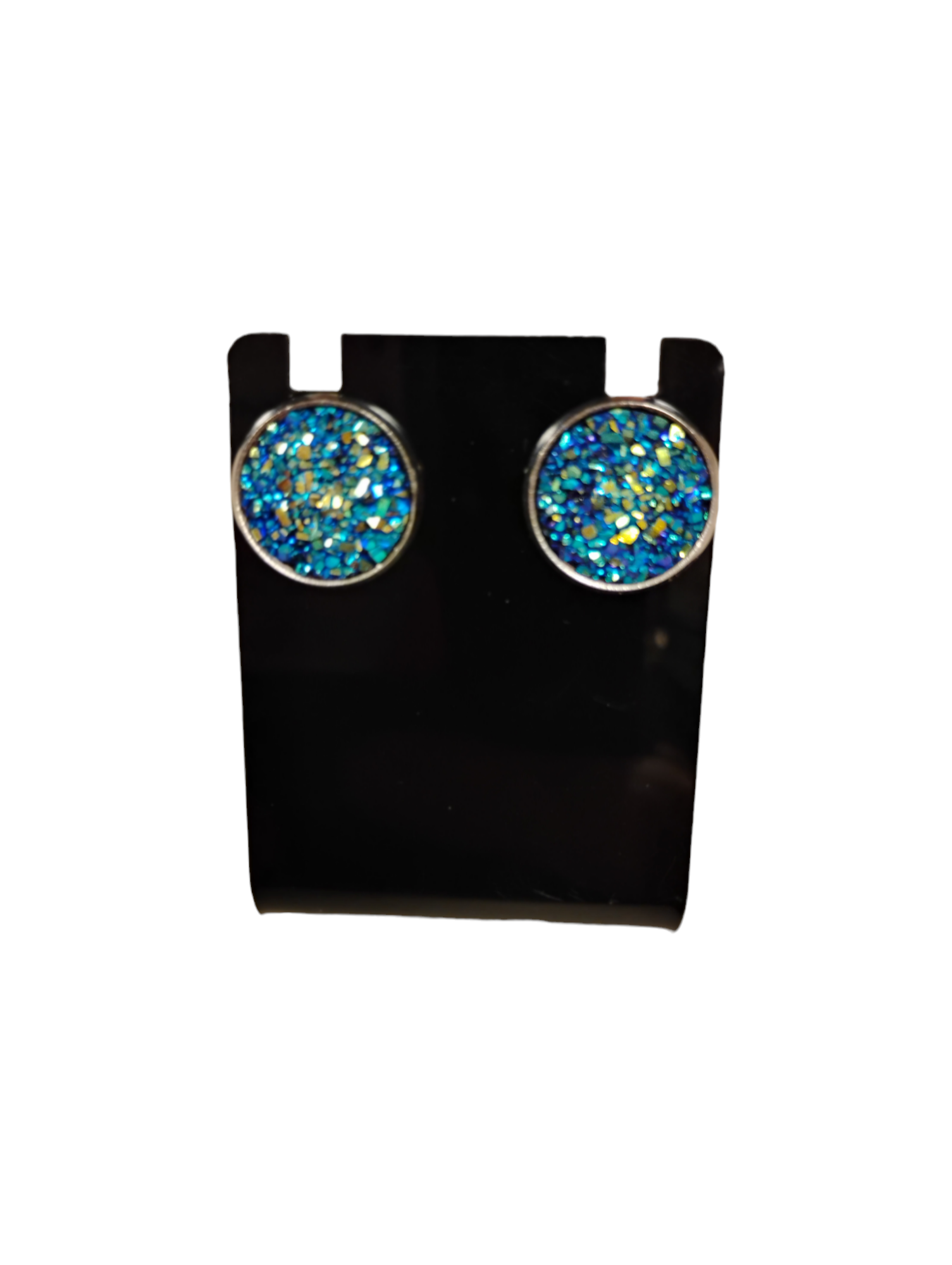 These fabulous pierced stud type earrings are sure to grab people's attention! Available in a variety of colors these druzy glitter earrings will get with almost any outfit! Choose from available options