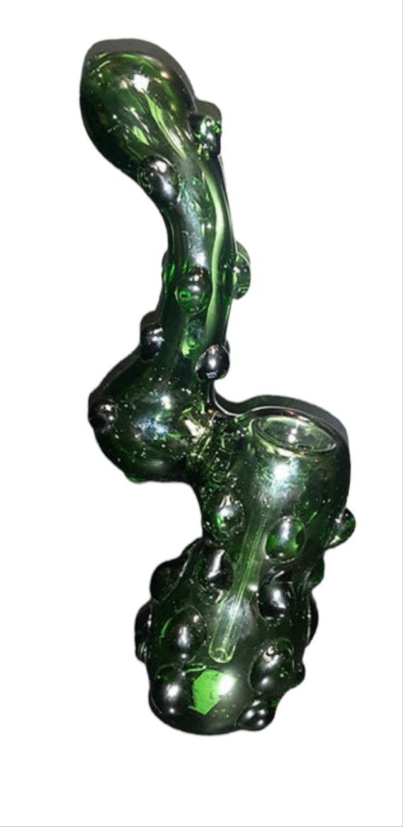 “The Grumble Glorb” – Bumpy Green Glass Bubbler Pipe