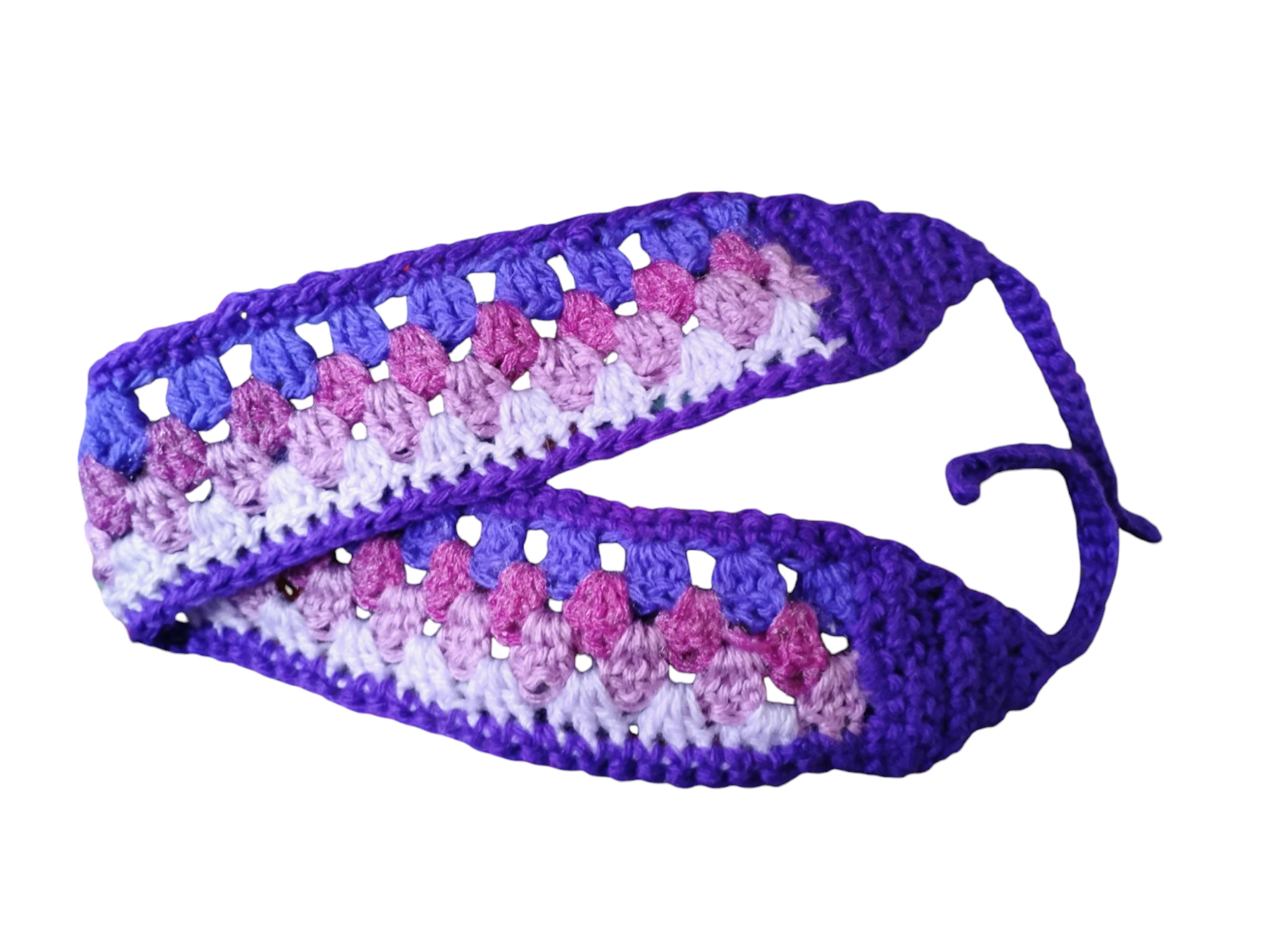 🍬 Sugarplum Stitch Crochet Headwrap Wrap your crown in cozy charm with the Sugarplum Stitch Crochet Headwrap—a handmade halo of purples, pinks, and soft white clusters that feel like a fairytale come to life. With its stretchy comfort and tie-on ease, this headwrap is stitched for dreamers, dancers, and everyday enchantment.