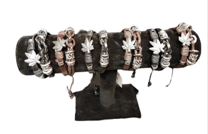 Slide into your mellow era with this adjustable leather bracelet, strung with earthy beads and crowned with a bold cannabis leaf charm — a little nod to your inner wanderer, rebel, and plant-loving soul. Whether you're vibing at a festival, posted up at a smoke sesh, or just channeling your grounded glam, this piece brings that stoner-chic energy with zero effort.