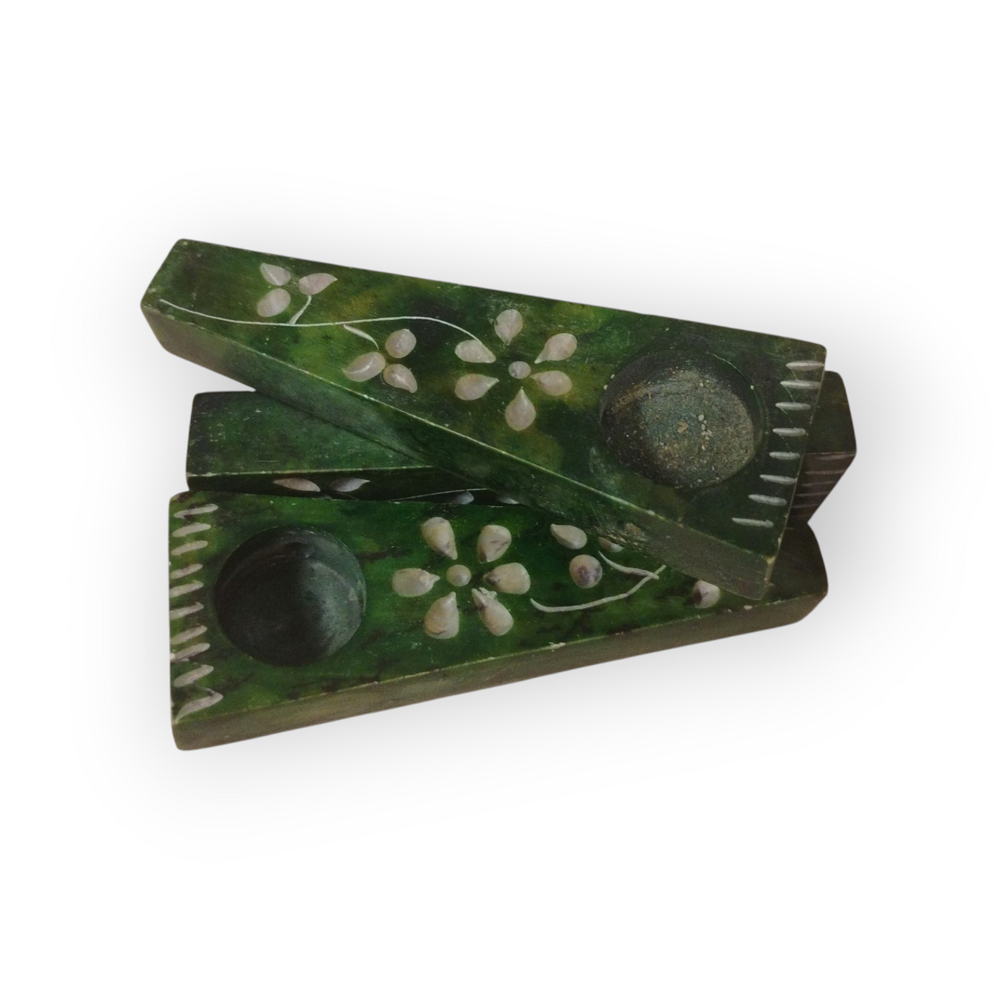 Hand-carved green marble with floral etchings—earthy, elegant, and one-of-a-kind