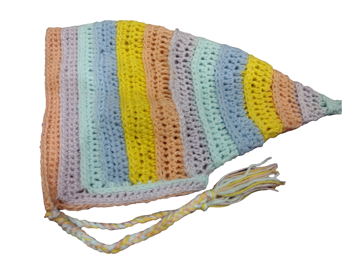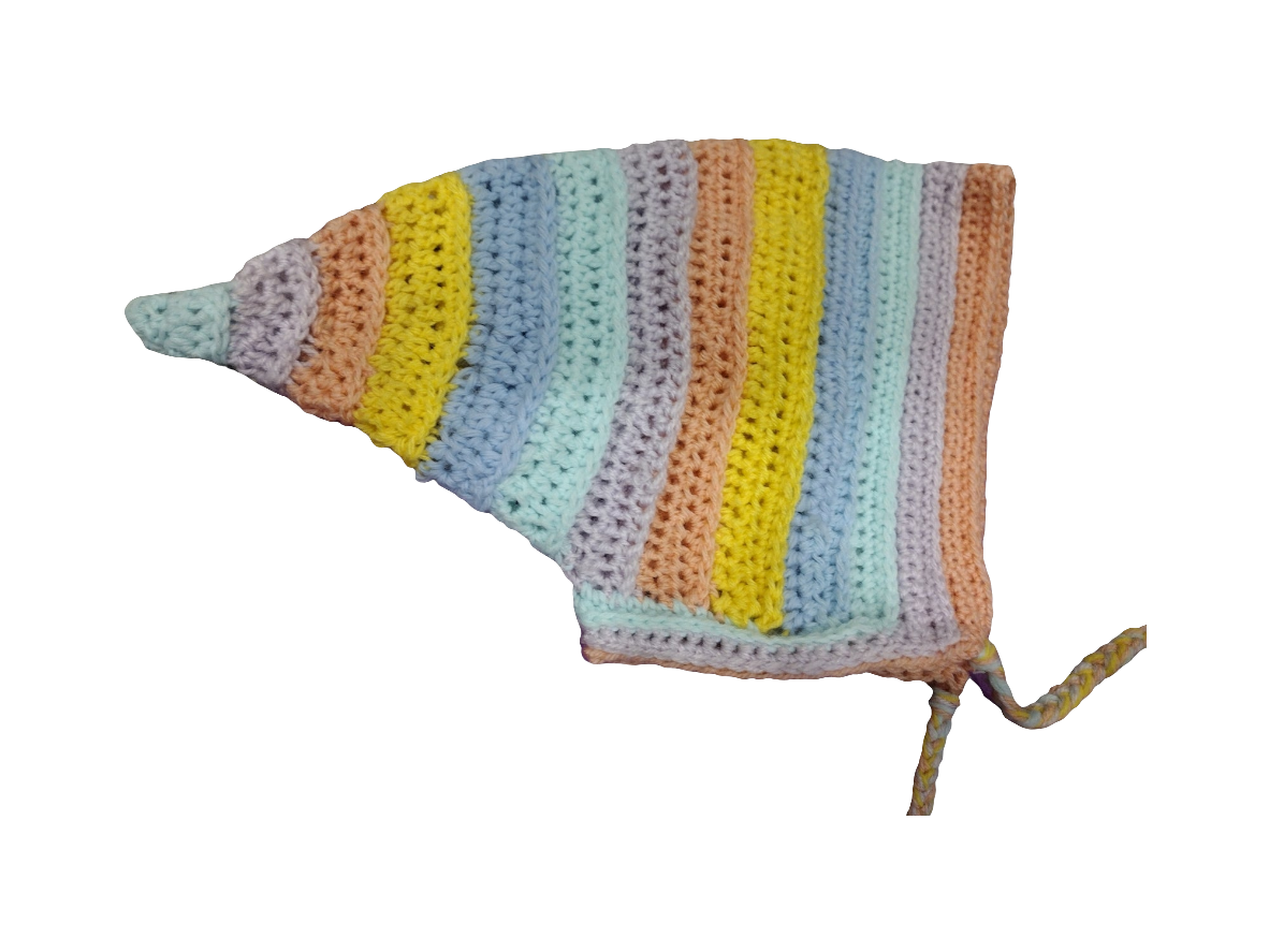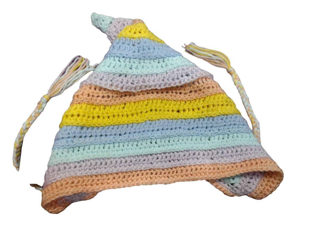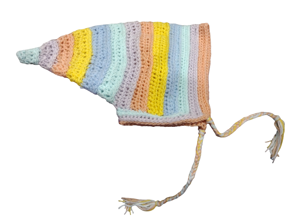 Slip into something spellbound with the WhimsyWander Hoodlet—a hand-crocheted swirl of pastel magic, stitched with love and ready to romp through meadows, markets, and moonlit mischief. With its pointed pixie tip and tie-string charm, this hood is pure enchantment for your crown.