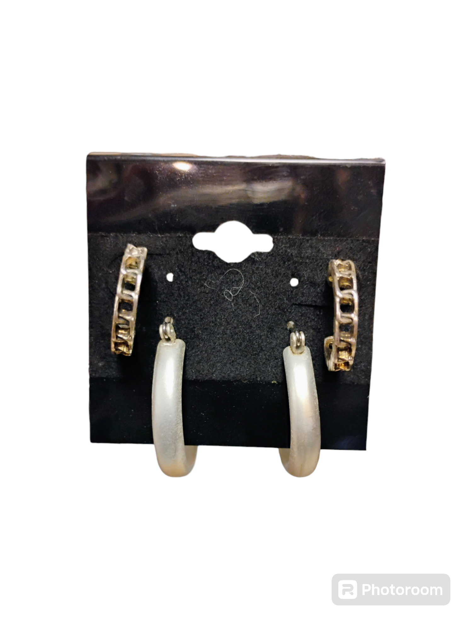 ✨ Meet your new ear essentials with Double Daze—a two-pair hoop set that flips between laid-back cool and glitzy glam without missing a beat. First up: smooth silver-toned hoops that keep it classic, clean, and effortlessly wearable. Then switch it up with their sparkle-studded sisters—hoops that shimmer just enough to catch compliments without trying too hard.