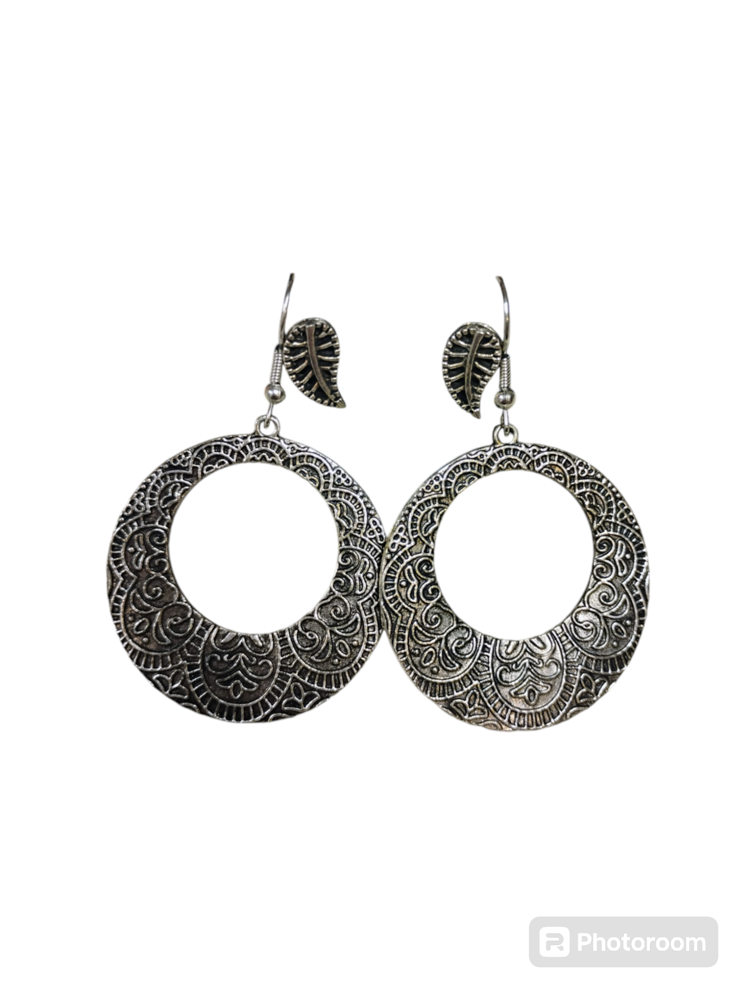 ✨ Weave your vibe with Leaf & Loom—a two-pair set that blends nature’s grace with artisan detail. The first pair features ornate round dangles etched in silver-toned metal, swirling with symmetrical patterns that echo ancient craft and quiet power. The second pair keeps it grounded with silver leaf studs—delicate, textured, and full of forest whisper energy.