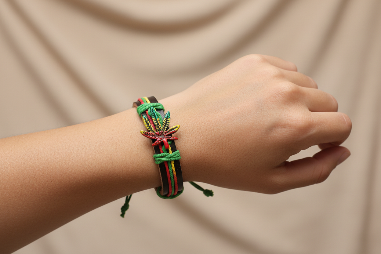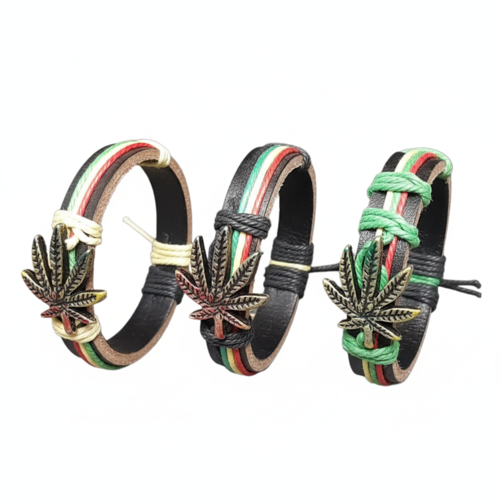 Add a burst of vibrant color to your look with the RastaGlow Wrist Wrap™. This unisex leather bracelet features soft, adjustable construction, bold striped detailing, and a polished metal charm that brings the whole piece together. Comfortable, expressive, and easy to stack, it’s the perfect everyday accessory for anyone who loves standout style.