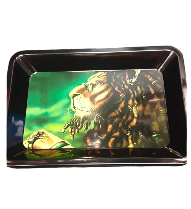 🌈 Coded Roots Bold, cracked, and full of flavor. With distressed Rasta stripes and vertical grounding lines, this tray speaks fluent chill. It’s your stash station with attitude—minus the loud labels.