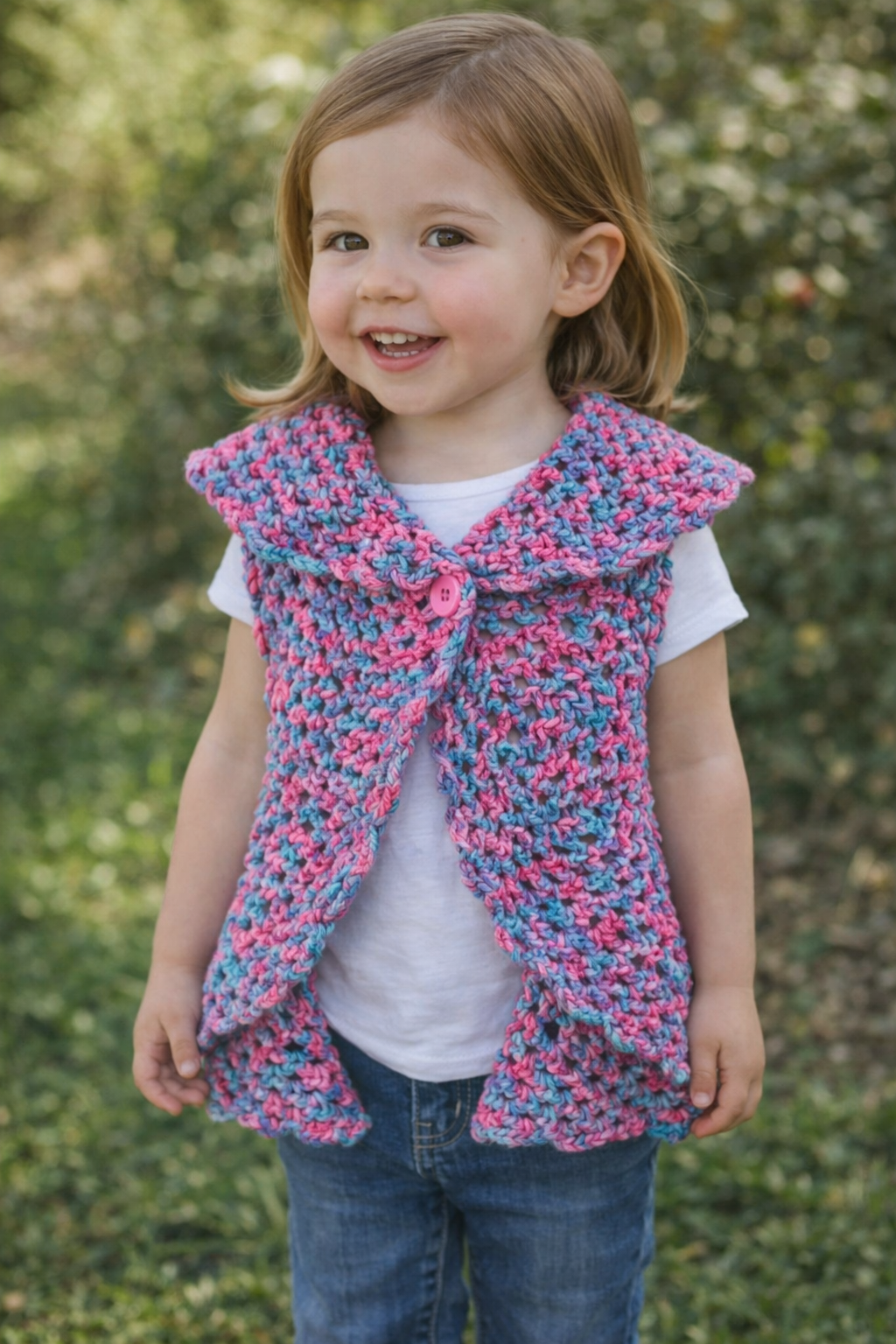 For your tiny muse who floats between fairy tales and funky flair, the Spiral Sprout Vest β Mirage Bloom Edition is stitched for daydreamers and garden dancers alike. Hand-crocheted with 100% acrylic yarn in a swirl of petal pinks, sky blues, and mystical purples, itβs like wrapping your little wildling in a mirage of color and cozy charm.