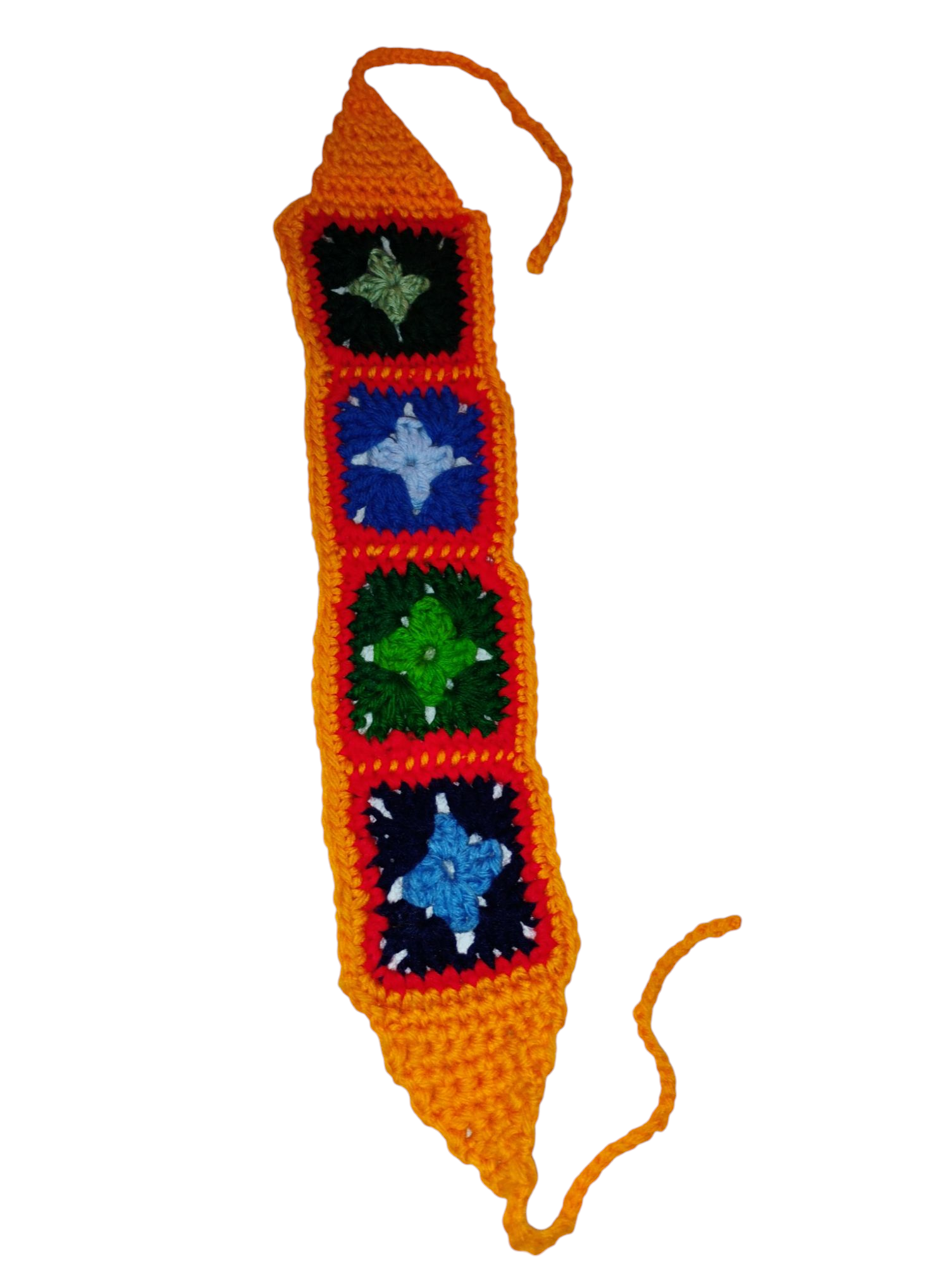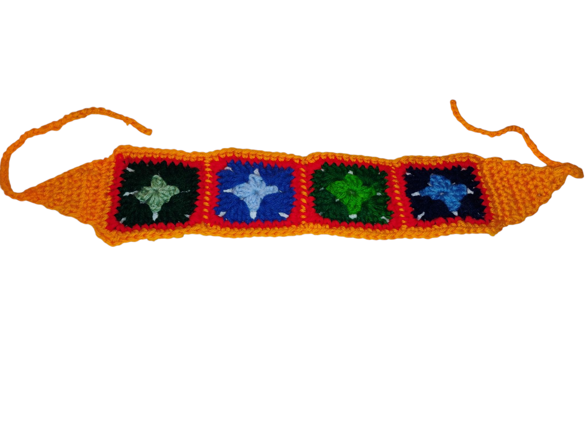 🌼 Grannycore Revival Headwrap Step into your flower-powered era with the Grannycore Revival Headwrap—a hand-stitched cascade of vibrant granny squares framed in juicy orange and stitched with pure retro soul. With its tie-on ease and kaleidoscope of color, this headwrap is made for dreamers, dancers, and disco queens who know that handmade is always in style.