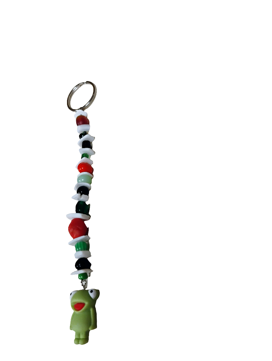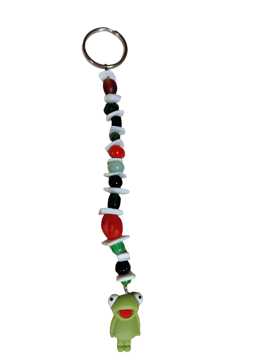 ⨠Featuring a hand-strung parade of red, green, black, and white beads, this funky froglet is part woodland sprite, part rave gremlin. With googly eyes that scream âIâm watching your aura,â and a smile that knows your secrets, itâs the ultimate sidekick for weirdos, wanderers, and bead-core believers.