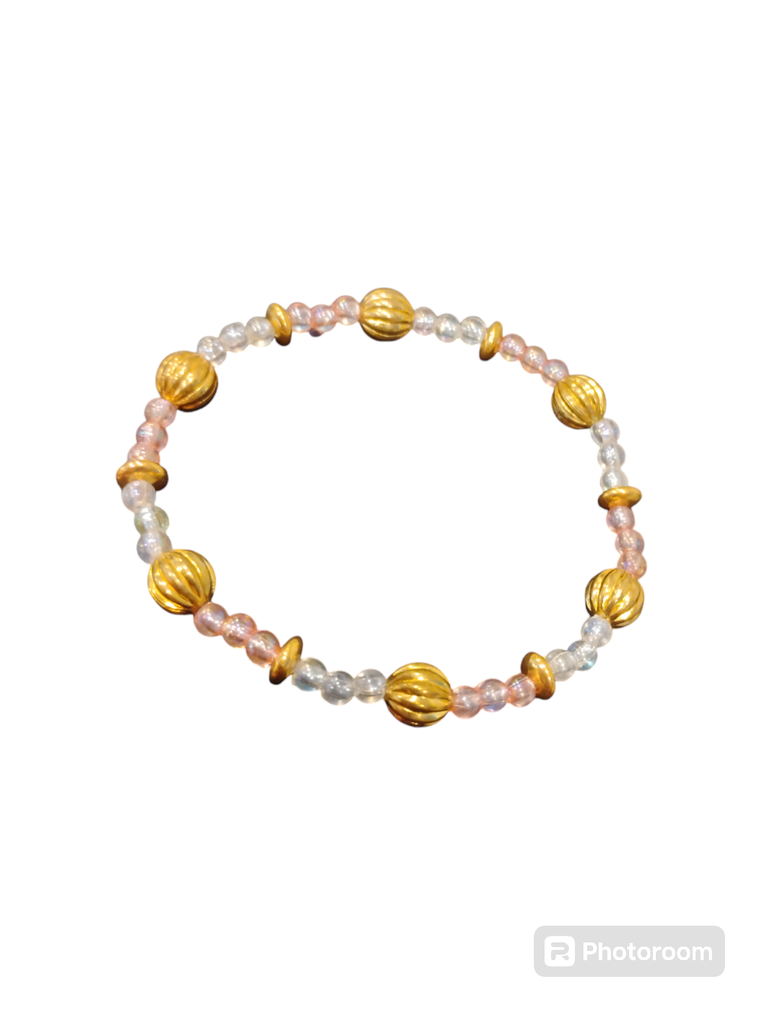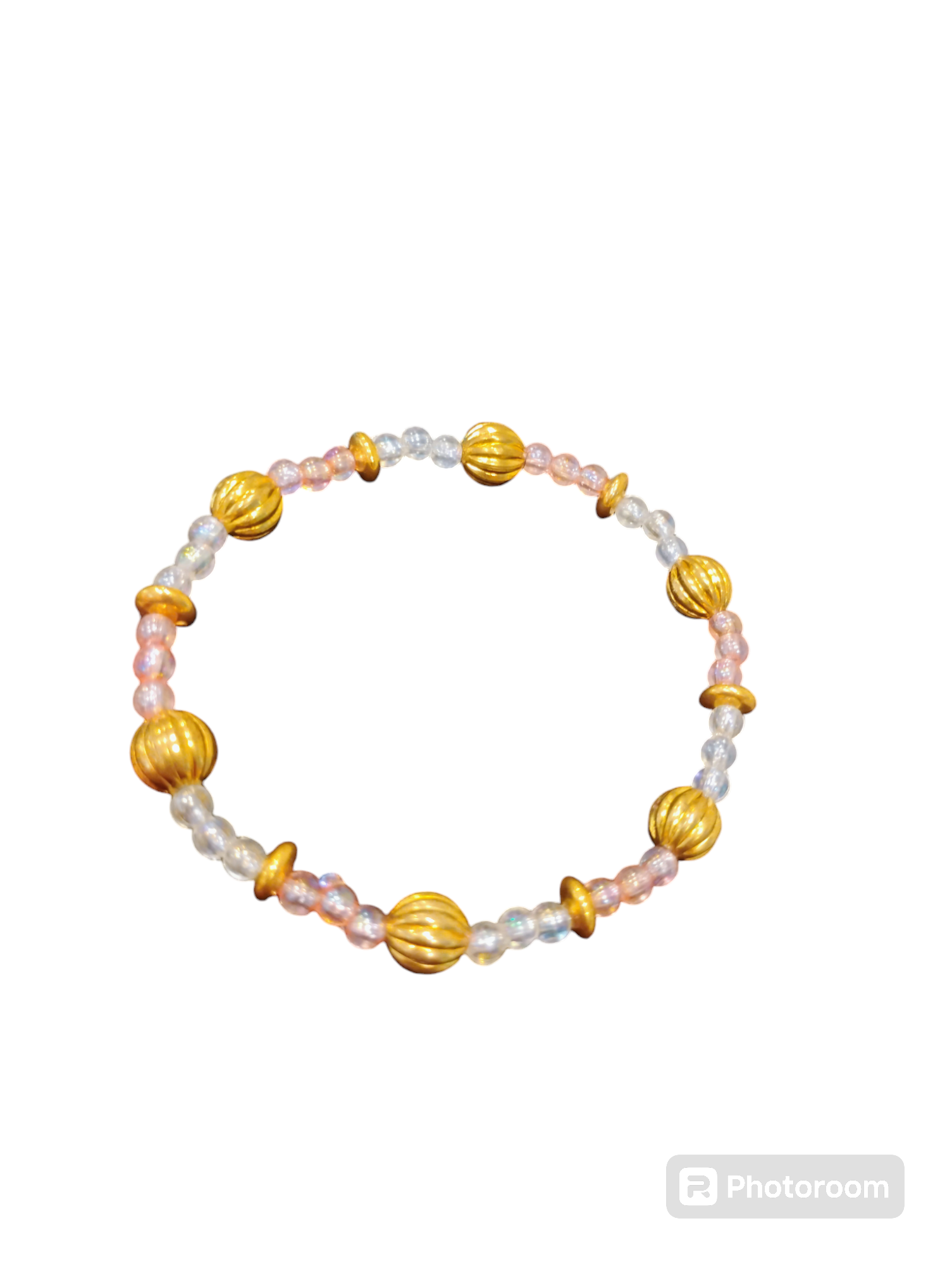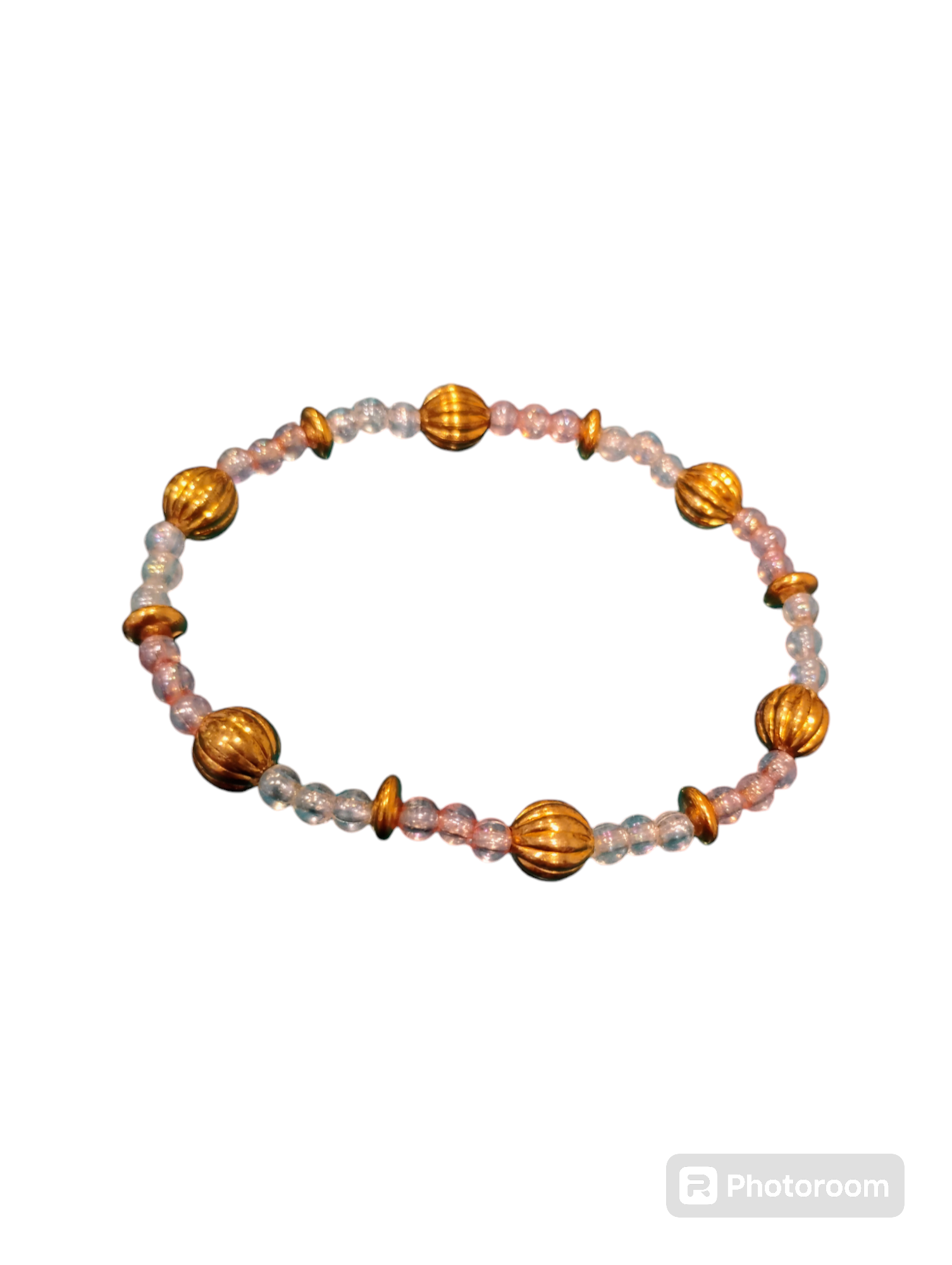 Step into your softest shimmer with the Golden Hour Groove Set—a blush-and-gold beaded duo that feels like sunset on your skin. Handmade with love and a little cosmic flair, this stretchy bracelet and matching earrings are your go-to for dancing barefoot at festivals, sipping chai in your favorite thrifted tee, or just vibing through the day with effortless glow.