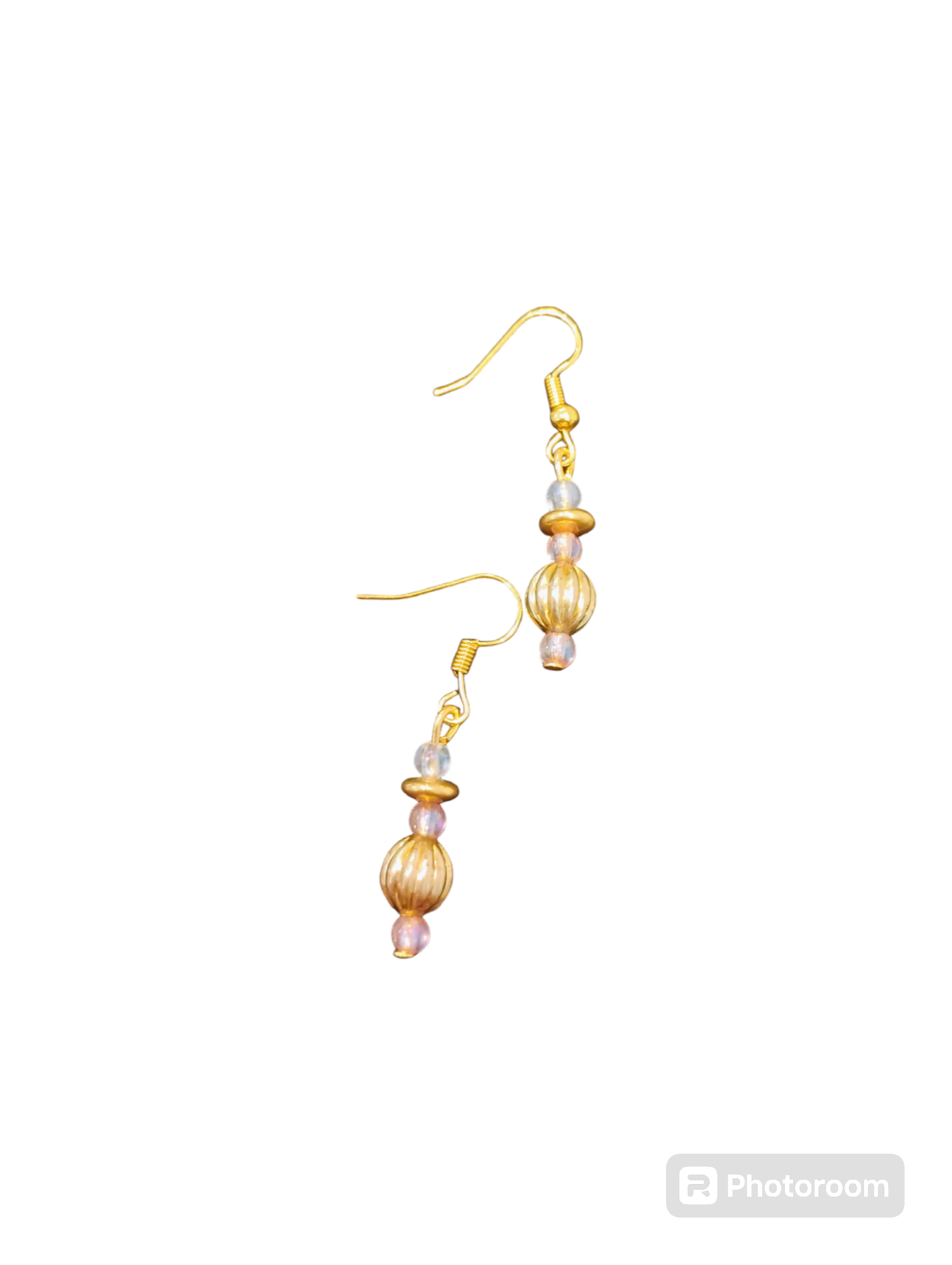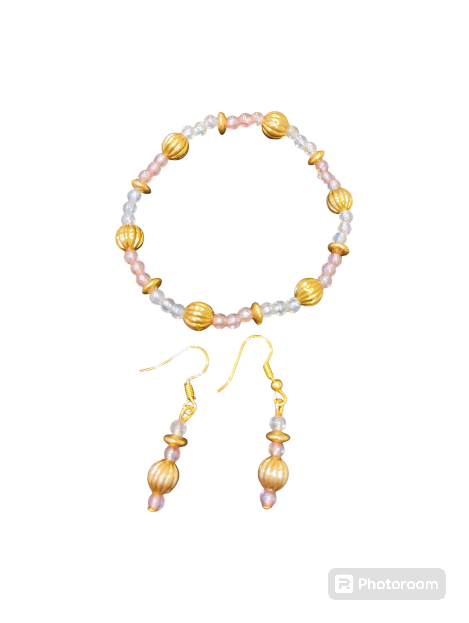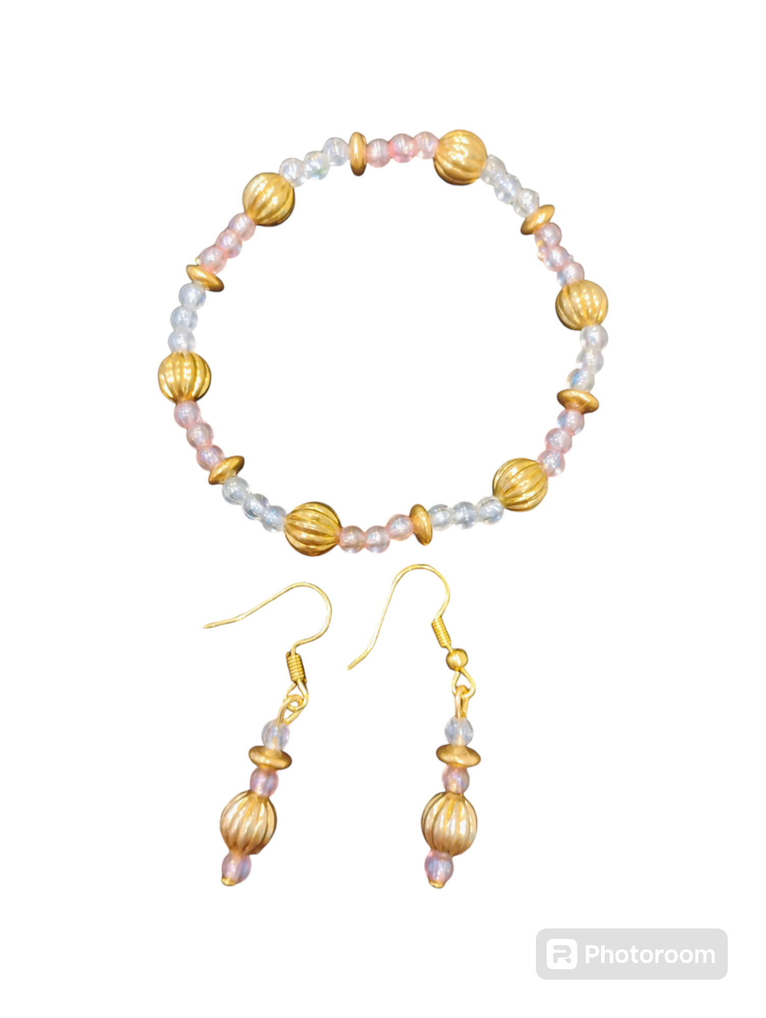 Blush & Gold Beaded Bracelet + Dangly Earrings